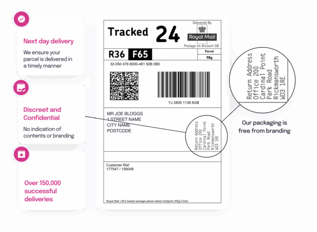 All items are delivered in plain, unbranded packaging to ensure your privacy. There is no reference to the contents of the package.