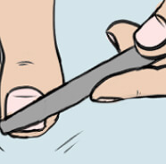 Before the first application, file down all infected areas of the nail including the nail surface as much as you can using the nail file provided. CAUTION: Do not use files that have been used for infected nails on healthy nails otherwise you risk spreading the infection. To further reduce risk of spreading the infection, ensure that no one else uses the files from your kit.