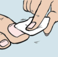 Use one of the swabs provided to clean the surface of the nail. Repeat step 1 and 2 for each infected nail.