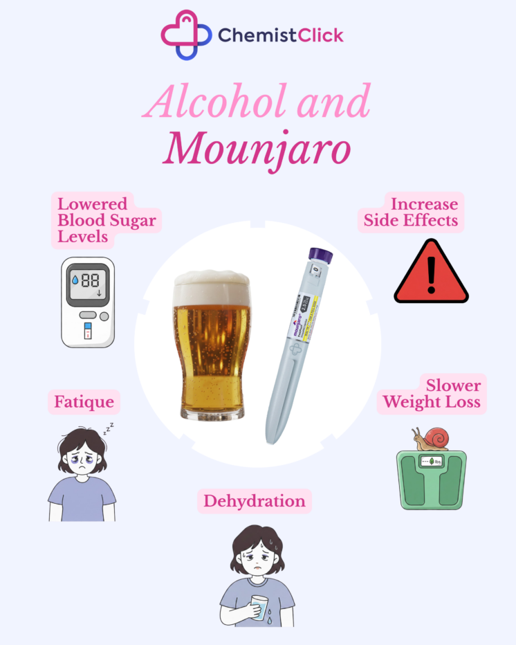 Both Mounjaro and alcohol can affect how your body processes food and regulates blood sugar, so using them together can make certain reactions more likely to occur.