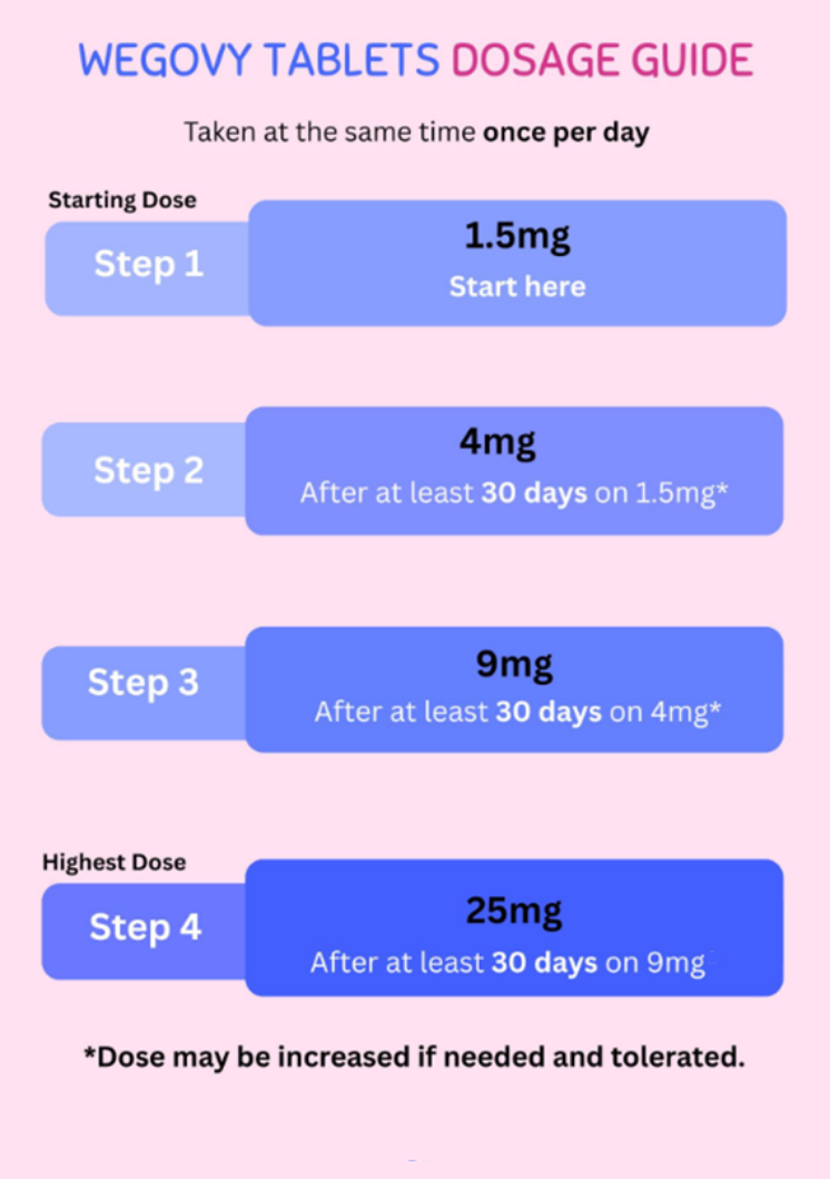 Wegovy tablets are designed to reach a maintenance dose of 25mg once daily.