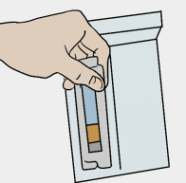 Carefully fill the tube from the collection box, ensuring that you do not get any liquid on the outside of the sample bottle